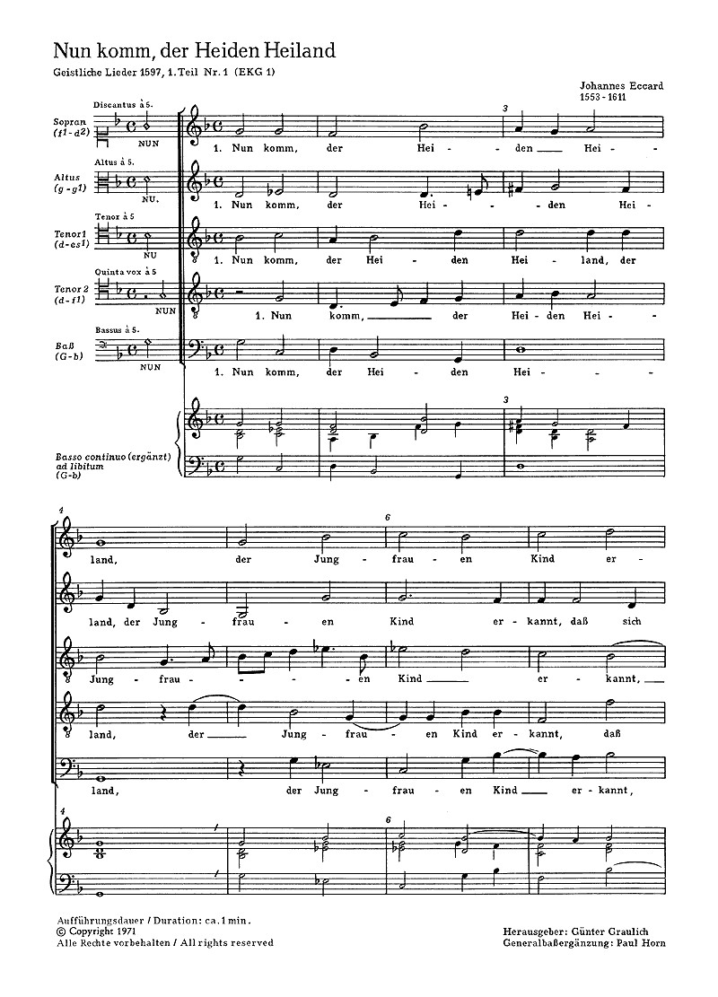 Nun komm, der Heiden Heiland - Muestra de música