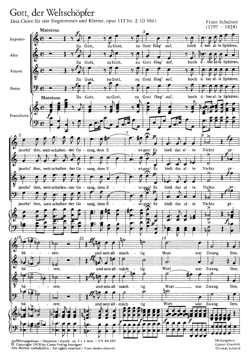 Título Schubert: Gott, der Weltschöpfer; Hymne an den Unendlichen