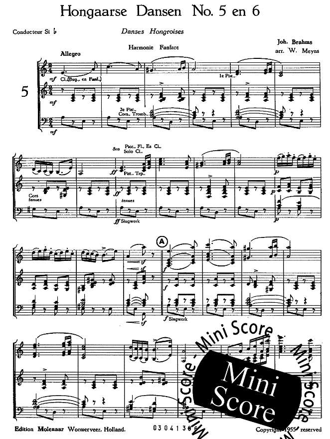 Hongaarse Dansen #5+#6 - hacer clic aquí Hongaarse Dansen #5+#6 (fanfarria ), Partitura condensada y partes instrumentales