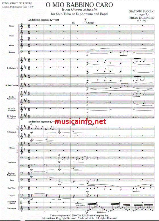 Otros detalles/contenidos This familiar aria from Puccini's opera is scored to feature solo tuba or euphonium. Gorgeous, lyric lines meld with a simple, warm background... an unforgettable arrangement. The wind and percussion score is a Grade 3 or less, and the solo euphonium part the same. (The tuba part is graded higher due to the extensive range.)