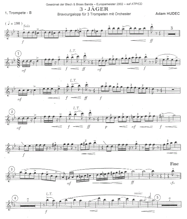 3 Jäger (Drei) - hacer clic aquí 3 Jäger (Drei) (banda de música; trompeta en Si bemol), Partitura condensada y partes instrumentales