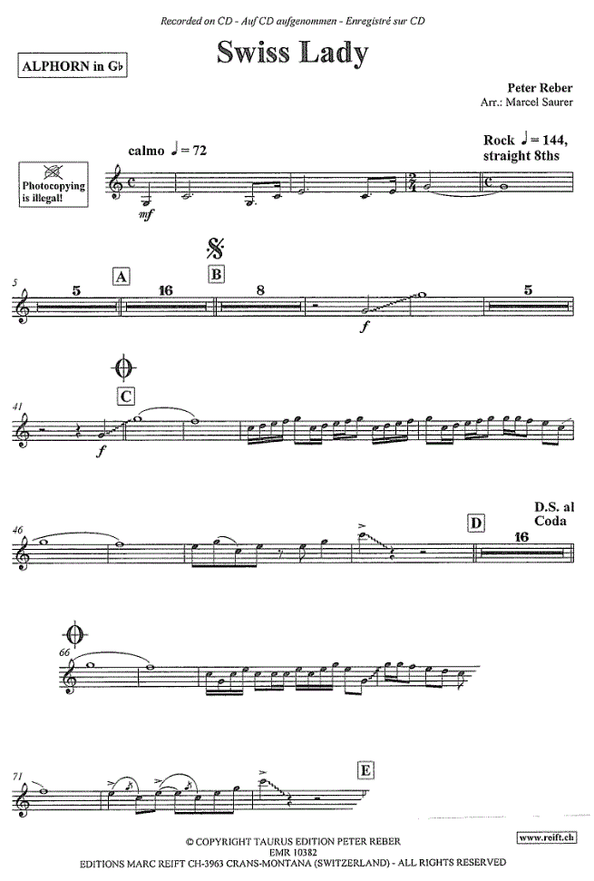 Swiss Lady - hacer clic aquí Swiss Lady (banda de música; o; fanfarria ; Trompa de los Alpes), partitura