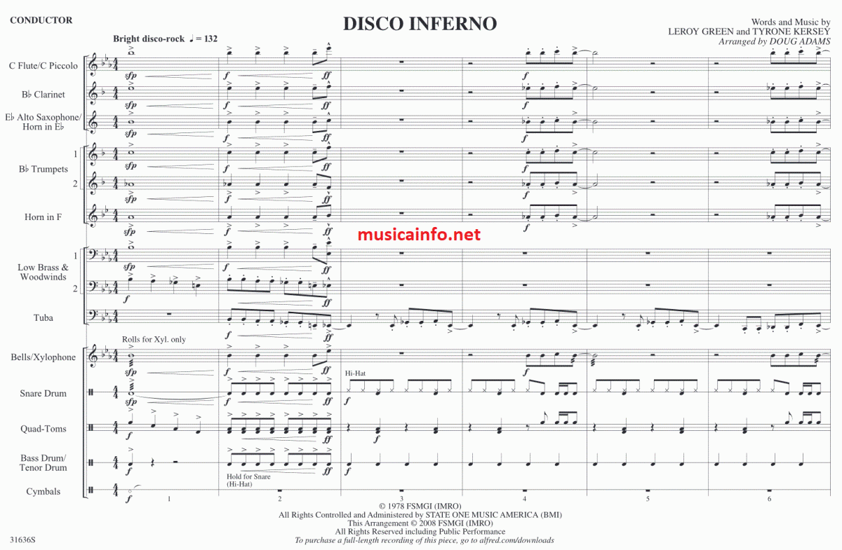 Disco Inferno - hacer clic aquí Disco Inferno (banda de música; banda de marcha), partitura