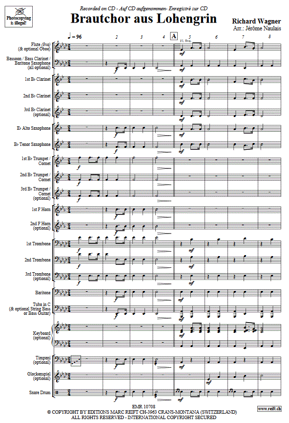 Brautchor (aus 'Lohengrin') - hacer clic aquí Brautchor (aus 'Lohengrin') (banda de música; o; fanfarria ), partitura