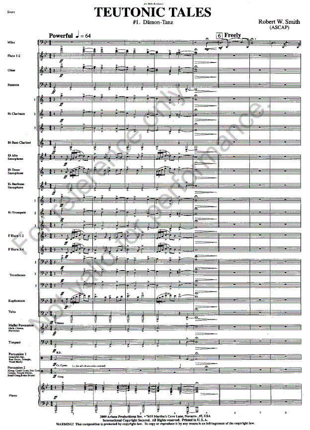 Otros detalles/contenidos Band accompaniment for Movement 1 of Robert W. Smith's "Teutonic Tales" for solo tuba. The band parts are reproductions of the composer's original working parts.
