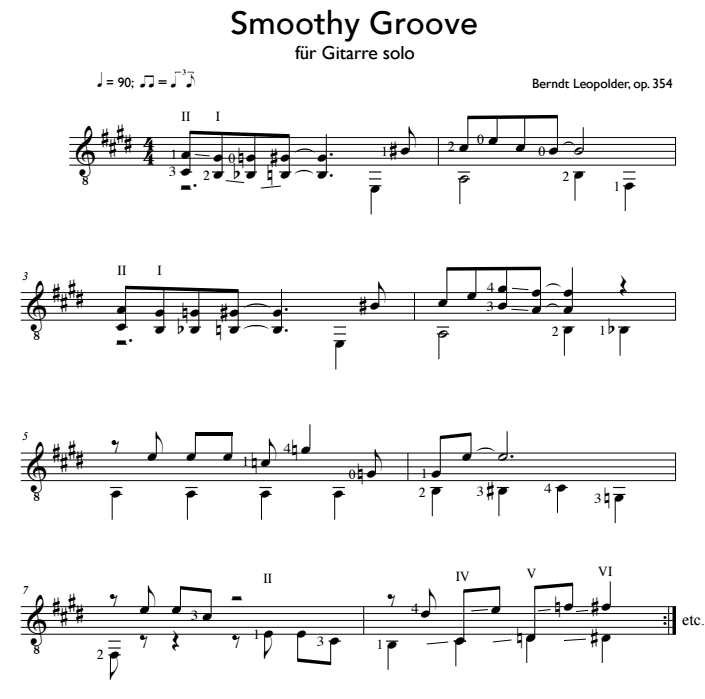 Otros detalles/contenidos "Smoothy Groove" ist ein Stück mit "swingenden" Charakter. Der Spieler sollte auch schon genügend Erfahrung im Lagenspiel mitbringen.