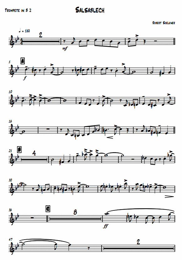 Instrumentación/Información 3Trp (3 trompetas en Si bemo); / (o); 3Flh (3 Flügelhorn); Tnh (fiscorno tenor); Brt (bombardino barítono); Tub (tuba); Schlgz (batería)