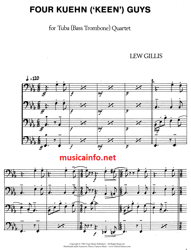 4 Kuehn ('Keen') Guys (Four) - hacer clic aquí 4 Kuehn ('Keen') Guys (Four) (4 tubos; o; 4 trombónes; o; 4mixed), partitura y piezas