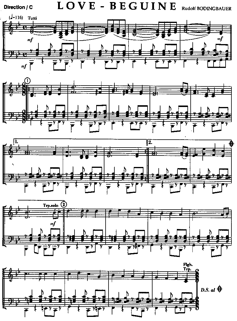 Love-Beguine - hacer clic aquí Love-Beguine (banda de música), Partitura condensada y partes instrumentales