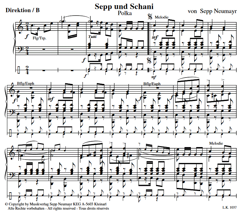 Sepp und Schani - hacer clic aquí Sepp und Schani (banda de música), Partitura condensada y partes instrumentales