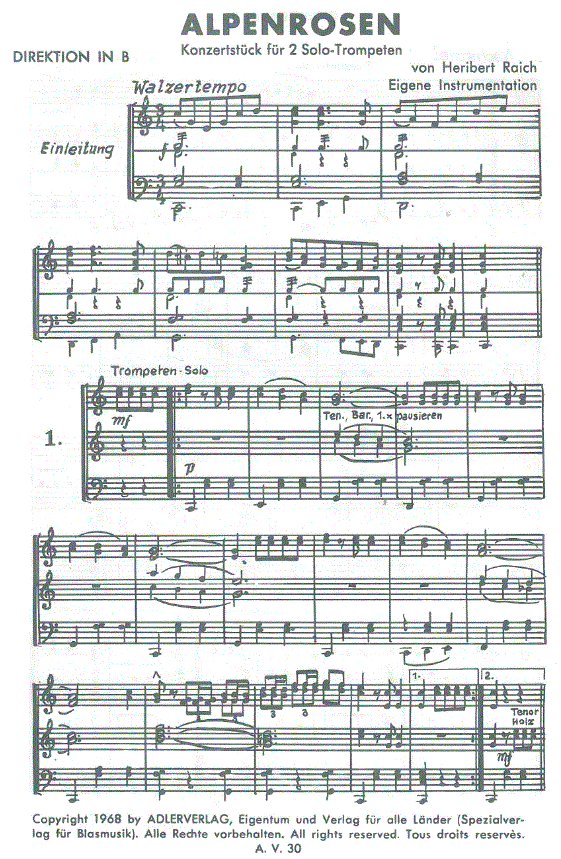 Instrumentación/orquestación Ha (banda de música); Trp (trompeta en Si bemol)