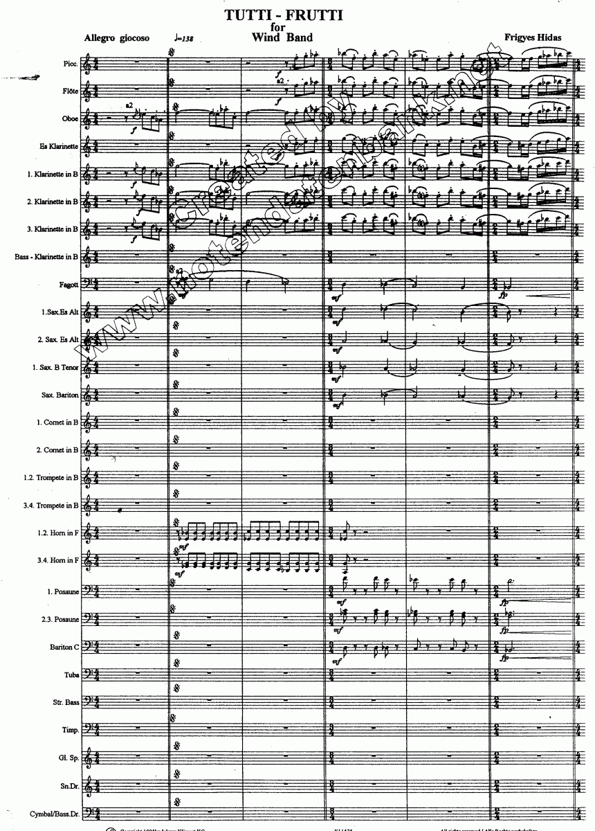 Otros detalles/contenidos Esta pieza fue compuesta para el congreso de la IGEB de 1994 en Abony, Hungría. La banda local de la ciudad hizo el estreno mundial en el congreso. El gracioso título muestra los mismos personajes que se pueden encontrar en la pieza. Los tutti frutti italianos con sabor a helado tienen muchos sabores diferentes, con mucha diversión. Lo mismo sucede con esta pieza con su melodía y su estilo característico.