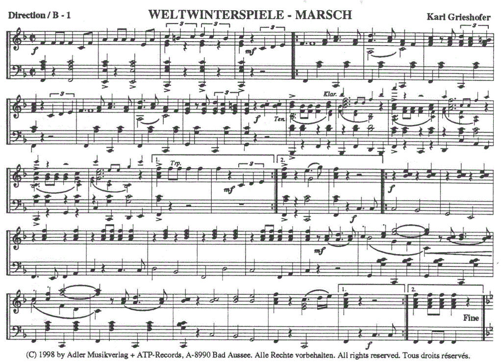 Weltwinterspiele-Marsch - hacer clic aquí Weltwinterspiele-Marsch (banda de música), Partitura condensada y partes instrumentales